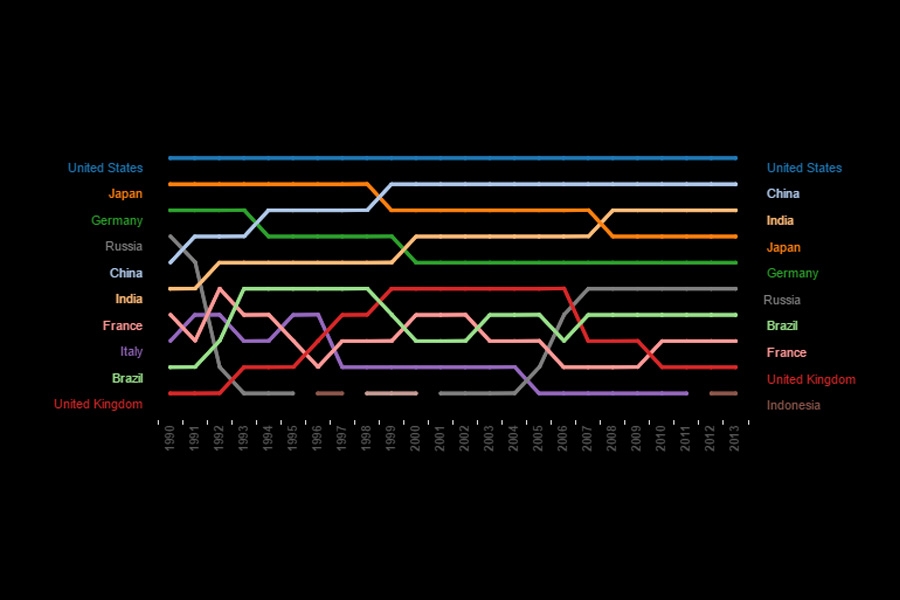 World Bank Historical List of Ten Largest Countries by GDP (1990 - 2013)