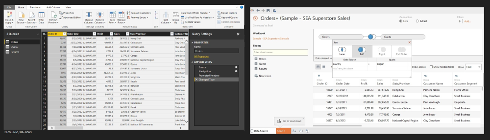 Both Power BI and Tableau take different approach on data preparation. Power BI Desktop provide modeling and transformation in an Excel like interface with a built in Power Query engine where user will be able to transform data in multiple steps within a query window – Query Editor, before user can see how data are presented in report. On the other hand, Tableau allow us to visualize data first then decide any additional integration within data source in a graphic interface or vice versa. Simple features like rename table or column field, transform data type, delete or hide calculated columns are available in both Query Editor and Tableau Desktop’s data connection window.